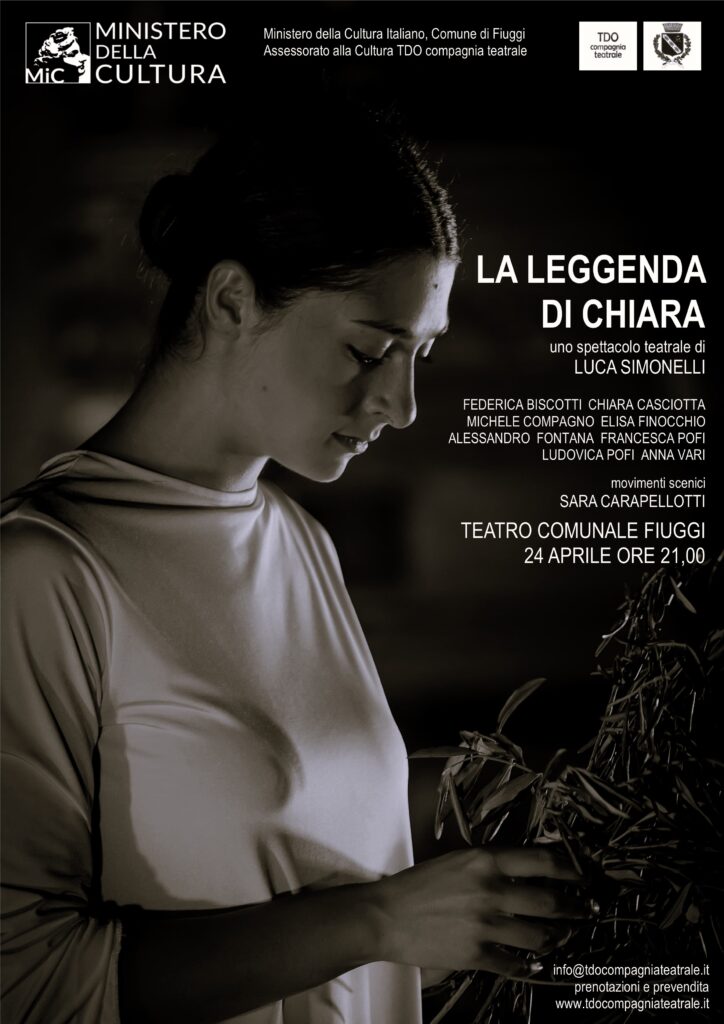 Giovedì 24 aprile, alle ore 21.00, il Teatro Comunale di Fiuggi ospiterà il sesto atteso appuntamento della rassegna teatrale annuale con lo spettacolo “La leggenda di Chiara”, un’opera intensa e suggestiva che unisce recitazione, musica e teatro danza per raccontare – in forma di leggenda popolare – la straordinaria vita di Santa Chiara d’Assisi.