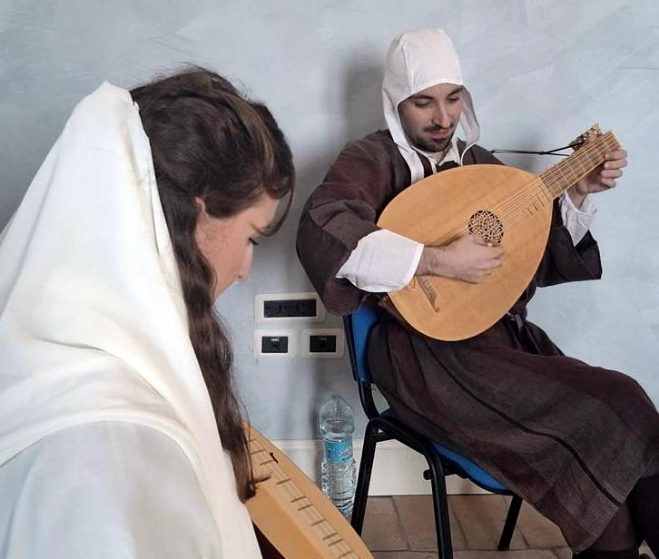 L’evento, presentato magistralmente dal Prof. Gaetano D’Onofrio, ha saputo ricreare l’atmosfera del Duecento grazie a una cura dei dettagli davvero notevole. Le note della musica medievale, eseguite con grande maestria da Giulia Atturo e Mauro Ascenzi, hanno trasportato il pubblico indietro nel tempo. I due musicisti, in perfetti abiti d’epoca forniti da Lucia Martucci, capo contrada di Portario, e con la disponibilità dell’AIAM, hanno contribuito a rendere l’atmosfera ancora più suggestiva e autentica.