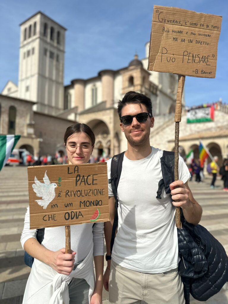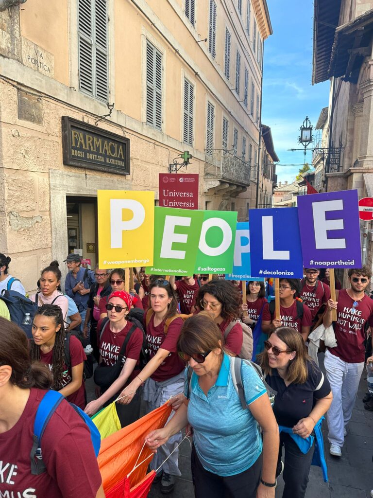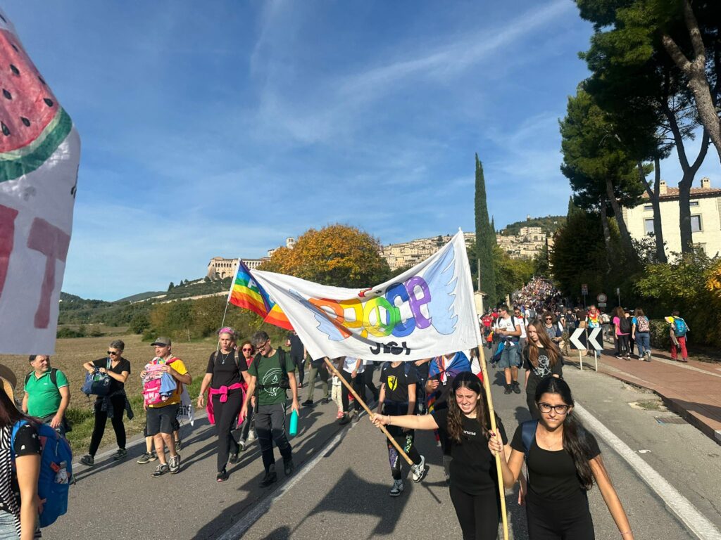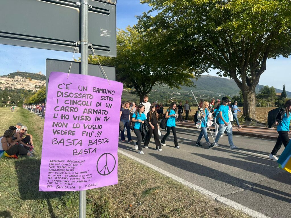 Quest’anno la Marcia ha assunto un significato ancora più intenso. Tra il dramma di Gaza e del 7 ottobre, la guerra tra Russia e Ucraina, i conflitti in Libano e in tante altre parti del mondo, la necessità di gridare “basta” alla violenza si è fatta impellente. Le bandiere della pace hanno colorato il percorso, mescolandosi alle bandiere della Palestina e agli striscioni con la parola “Fraternità“, tema centrale della manifestazione 2025.