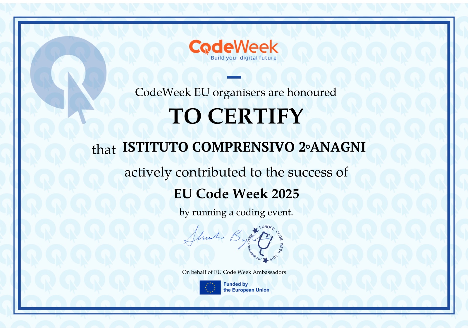 Il pensiero computazionale torna al centro dell’offerta formativa dell’Istituto Comprensivo Secondo di Anagni, che anche quest’anno si conferma tra i protagonisti della Code Week 2025, la settimana europea dedicata al coding e all’educazione digitale. L’istituto diretto dalla Prof.ssa Daniela Germano ha rinnovato il proprio impegno nella promozione delle competenze digitali, partecipando attivamente all’iniziativa con l’evento “Back to code”, ufficialmente registrato sulla mappa del sito della EU Code Week.