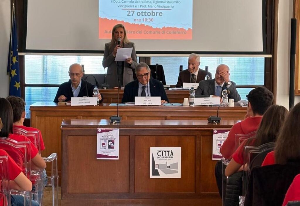 Una mattinata dedicata alla riflessione e al dialogo sui temi cruciali della nostra epoca: propaganda, disinformazione e teorie del complotto. Gli alunni delle classi terze delle scuole “Giuseppe Mazzini” e “Innocenzo III” di Colleferro hanno vissuto un’esperienza formativa di grande valore presso l’aula consiliare del Comune di Colleferro, incontrando Paolo De Luca, giornalista e autore dei libri “L’inganno necessario” e “La fabbrica delle ombre”.