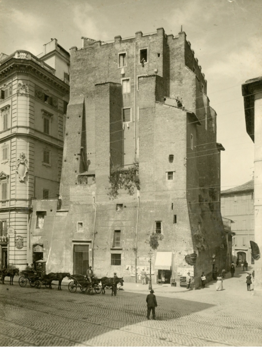 L’imponente struttura fu fatta costruire intorno al 1203 per volontà di papa Innocenzo III Conti, che la destinò al fratello Riccardo dei Conti di Segni come dimora fortificata per l’intera famiglia. Secondo gli studiosi, la realizzazione dell’edificio potrebbe essere attribuita a Marchionne Aretino, lo stesso architetto a cui viene associata la celebre Torre delle Milizie. Per la sua edificazione furono impiegati materiali di recupero provenienti da antichi templi romani, tra cui quelli dedicati a Cesare e Nerva, oltre al cosiddetto “Templus Telluris”.