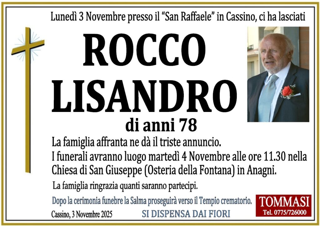 La scomparsa di Rocco Lisandro lascia un vuoto difficile da colmare nella vita cittadina. Il suo esempio di servizio disinteressato e la sua capacità di ascolto rappresentano un’eredità preziosa per l’intera città di Anagni.