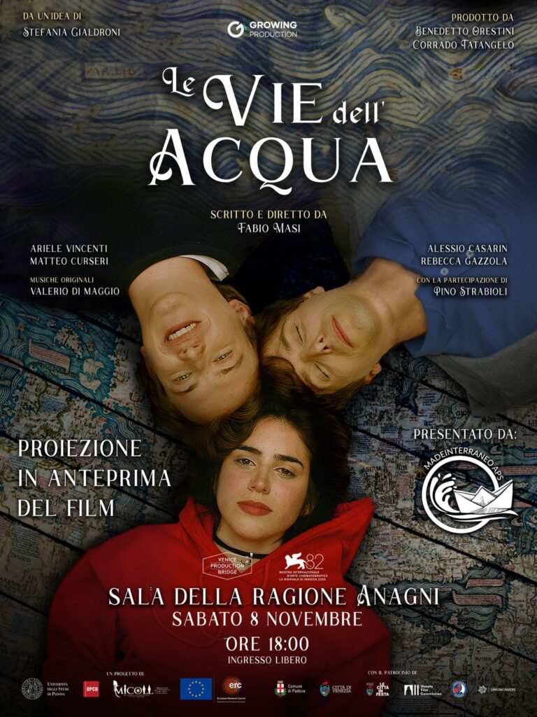 Quello che rende Le Vie dell’Acqua un progetto davvero unico è la sua genesi. Il film è nato infatti dall’Università Degli Studi di Padova nell’ambito del progetto MICOLL (Migrating Commercial Law and Language), ideato dalla Prof.ssa Stefania Gialdroni e finanziato dall’European Research Council (ERC). Un’origine accademica che ha dato vita a un’opera capace di fondere con maestria ricerca storica e narrazione contemporanea.
