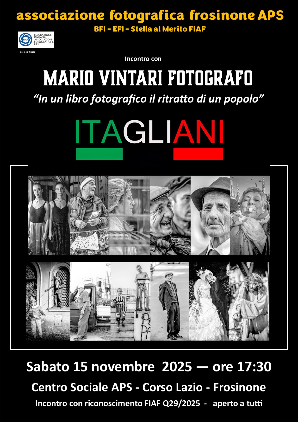 Un viaggio fotografico nell’anima di un popolo, quello italiano, colto nelle sue contraddizioni, nelle sue peculiarità e nella sua identità più profonda. È questo il cuore di “Itagliani”, il libro fotografico di Mario Vintari che sarà presentato sabato 15 novembre 2025 a Frosinone, in un incontro organizzato dall’Associazione Fotografica Frosinone APS.