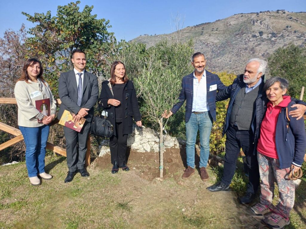 Il momento più emozionante della giornata si è svolto nei pressi della chiesa situata sul monte Asprano, dove don Danilo ha accolto la comitiva per un gesto dal profondo valore simbolico: la messa a dimora di un ulivo sulle terrazze sottostanti l’edificio sacro. La pianta è stata ricoperta con terra proveniente da Fossanova, il luogo dove il grande Santo concluse la sua esistenza terrena, creando così un ponte ideale tra la nascita e la morte del filosofo attraverso gli elementi della natura.
