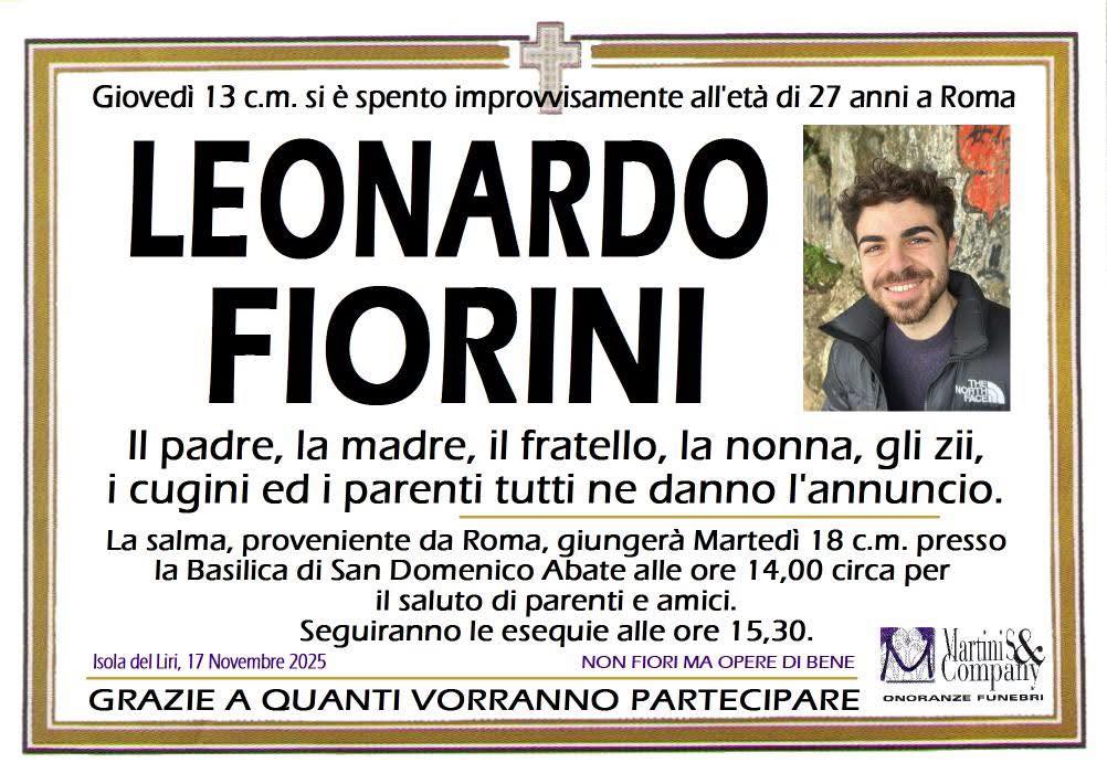 La tragica scomparsa di Leonardo Fiorini, ragazzo di Isola del Liri di soli 27 anni, ha lasciato sgomenta la sua comunità e l’intera Capitale. La tragedia è avvenuta nei giorni scorsi a Roma, quando Leonardo è precipitato dal balcone di un bed & breakfast, in circostanze che le autorità stanno ancora chiarendo.