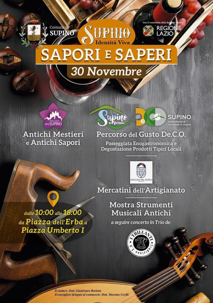 Il 30 novembre il centro storico di Supino si trasformerà in un palcoscenico di sapori, tradizioni e cultura con l’evento “Sapori e Saperi”, un’iniziativa che promette di valorizzare l’identità del territorio attraverso un percorso enogastronomico e culturale senza precedenti. L’appuntamento, organizzato dal Comune di Supino con il contributo della Regione Lazio, si svolgerà dalle 10:00 alle 18:00 e animerà le piazze principali del borgo con un programma ricco e variegato.
