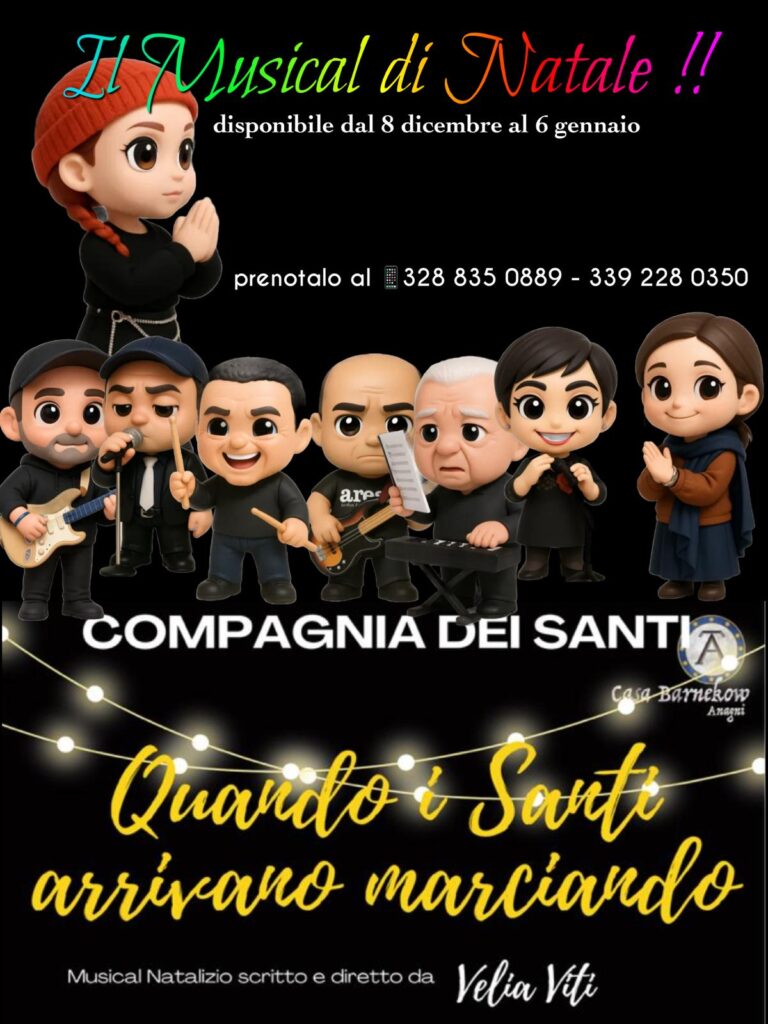 Il Natale si avvicina e con esso torna la magia del teatro. “Quando i Santi arrivano marciando”, il musical teatrale firmato dalla Compagnia dei Santi, si prepara a incantare nuovamente il pubblico del Lazio con due imperdibili appuntamenti delle feste natalizie 2025.