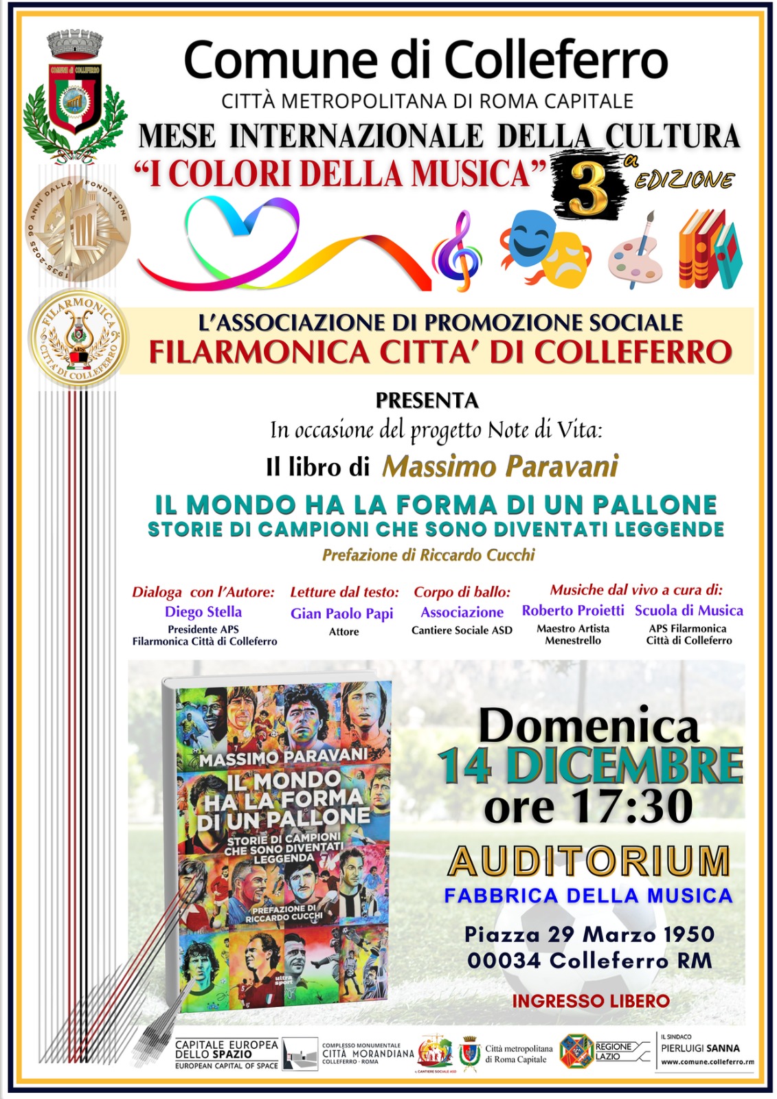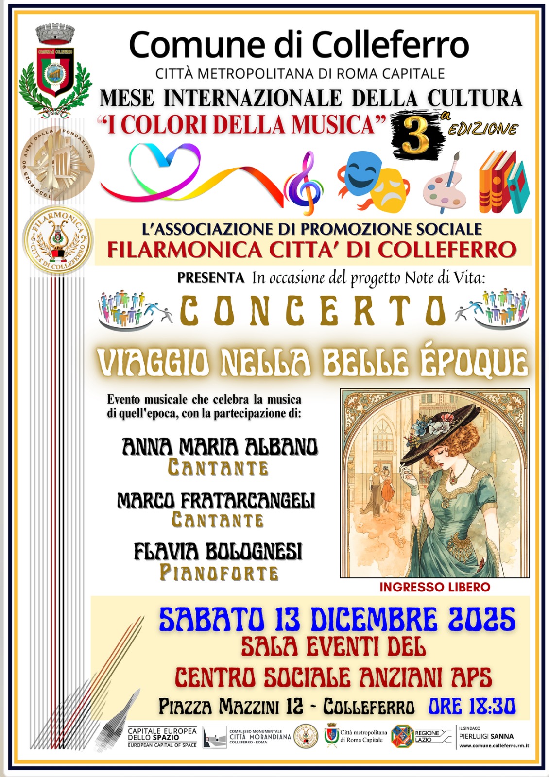 La Filarmonica Città di Colleferro APS, con il patrocinio del Comune di Colleferro, della Città Metropolitana di Roma Capitale e della Regione Lazio, è orgogliosa di presentare questa importante manifestazione artistica e culturale concepita per valorizzare la creatività, promuovere il dialogo tra le arti e rafforzare il ruolo della cultura come motore di comunità.