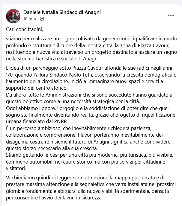 Una trasformazione temporanea ma significativa, che accompagnerà Anagni – si spera – verso una riqualificazione urbana attesa e che richiederà pazienza e collaborazione da parte di automobilisti e residenti.