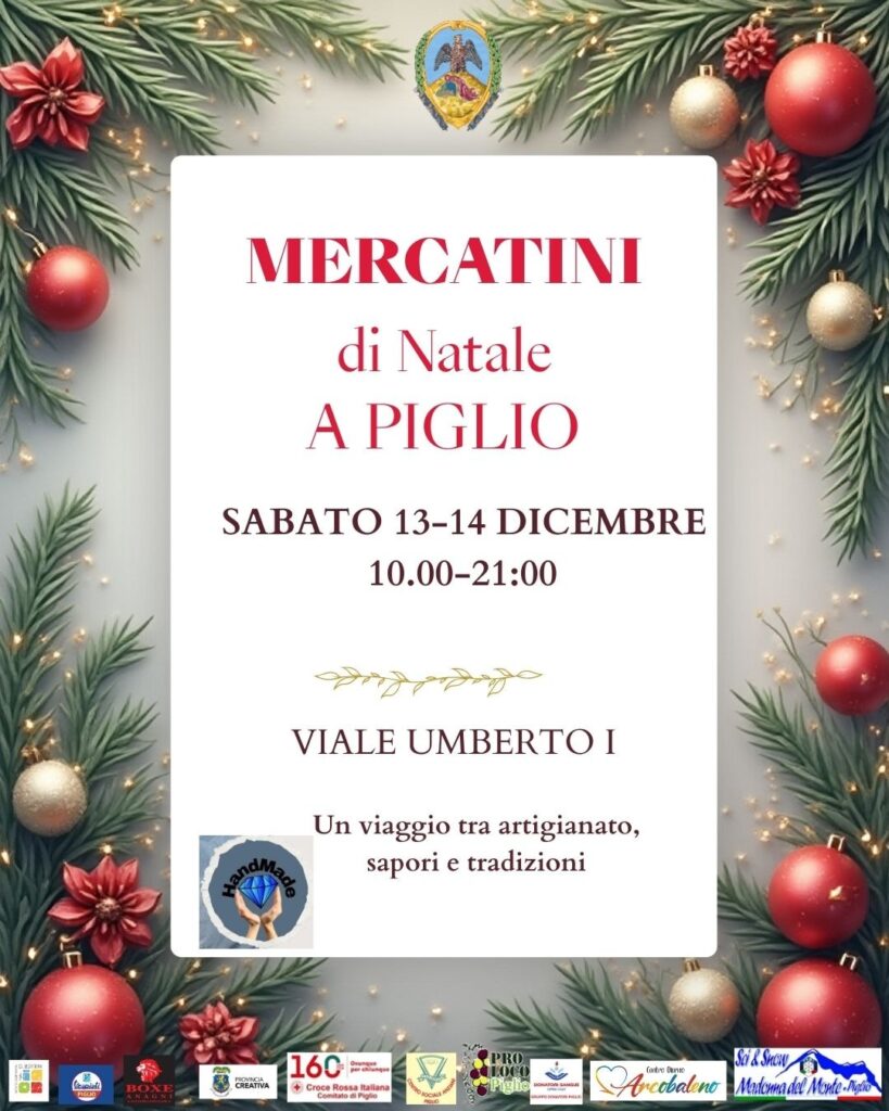 Il Natale a Piglio è anche sinonimo di tradizione e qualità musicale. Il primo weekend di festa vedrà protagonisti i Mercatini di Natale in Viale Umberto I, in programma sabato 13 dicembre dalle 14:30 e domenica 14 dicembre per l’intera giornata, occasione ideale per scoprire artigianato locale e sapori tipici.