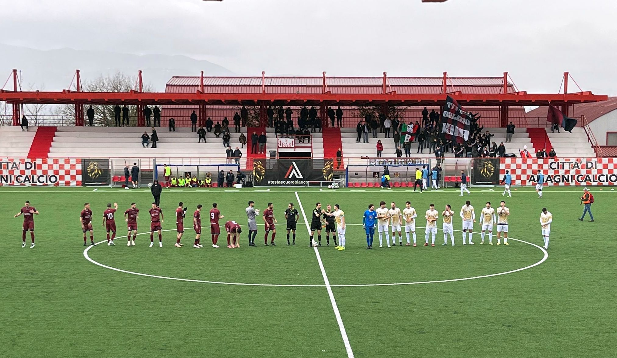Sotto un cielo plumbeo che minacciava pioggia ma davanti a una cornice di pubblico delle grandi occasioni, il Città di Anagni Calcio ha dato una dimostrazione di forza che risuona come un avvertimento per l’intero campionato di Eccellenza. Lo stadio Roberto Del Bianco, gremito in ogni ordine di posto dai sostenitori locali, è stato il teatro di un monologo biancorosso durato novanta minuti. La vittima illustre di turno è stata la Tivoli Calcio, arrivata all’impianto di via San Magno con l’ambizione della terza piazza e ripartita con un passivo pesantissimo che ne ridimensiona le velleità di sorpasso.