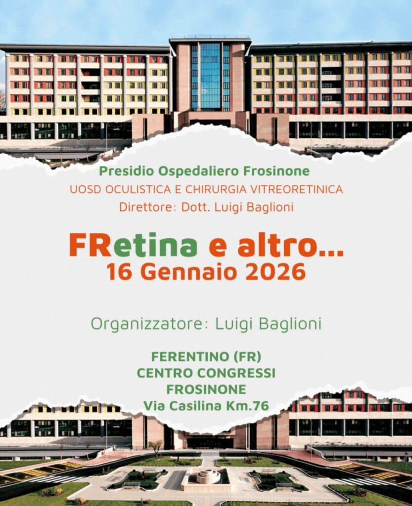La sanità d’eccellenza non parla solo la lingua delle grandi metropoli, ma trova in provincia di Frosinone un terreno fertile per il confronto scientifico di altissimo livello. Venerdì 16 gennaio, a partire dalle ore 8:30, i riflettori della comunità medica nazionale si accenderanno su Ferentino per la nuova edizione di FRetina e altro…, l’appuntamento ormai divenuto un punto di riferimento per l’oftalmologia e la chirurgia vitreoretinica. L’evento, che lo scorso anno ha registrato una partecipazione straordinaria, trasformerà il Centro Congressi Frosinone in un laboratorio di idee e innovazione tecnologica.