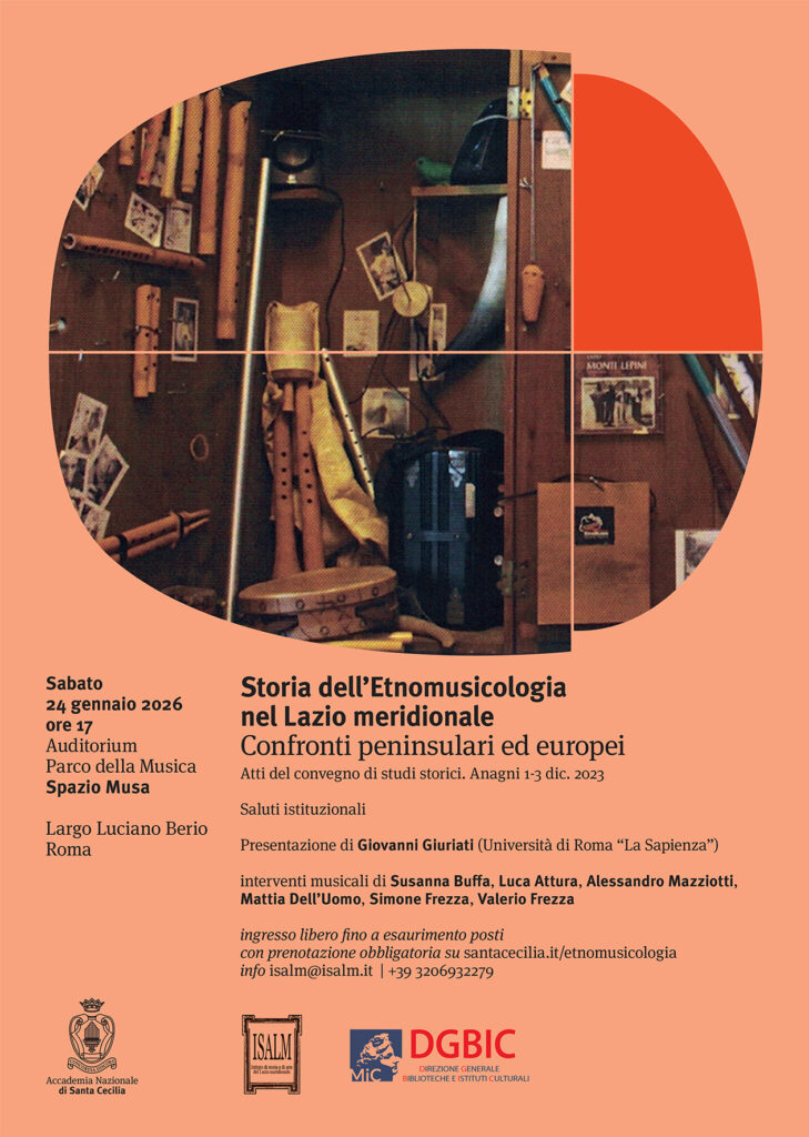 L’Auditorium Parco della Musica di Roma si prepara ad accogliere, sabato 24 gennaio 2026 alle ore 17, un appuntamento di alto profilo scientifico e culturale dedicato alla ricerca storica e musicale. Presso lo Spazio Musa, in Largo Luciano Berio, sarà presentato il volume “Storia dell’etnomusicologia nel Lazio Meridionale. Confronti peninsulari ed europei”, pubblicato dall’Istituto di Storia e Arte del Lazio meridionale di Anagni.