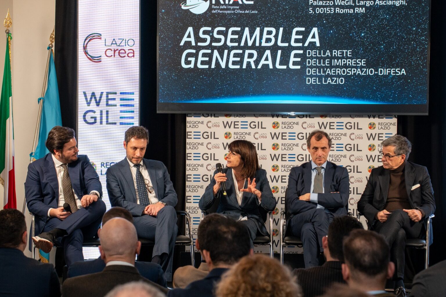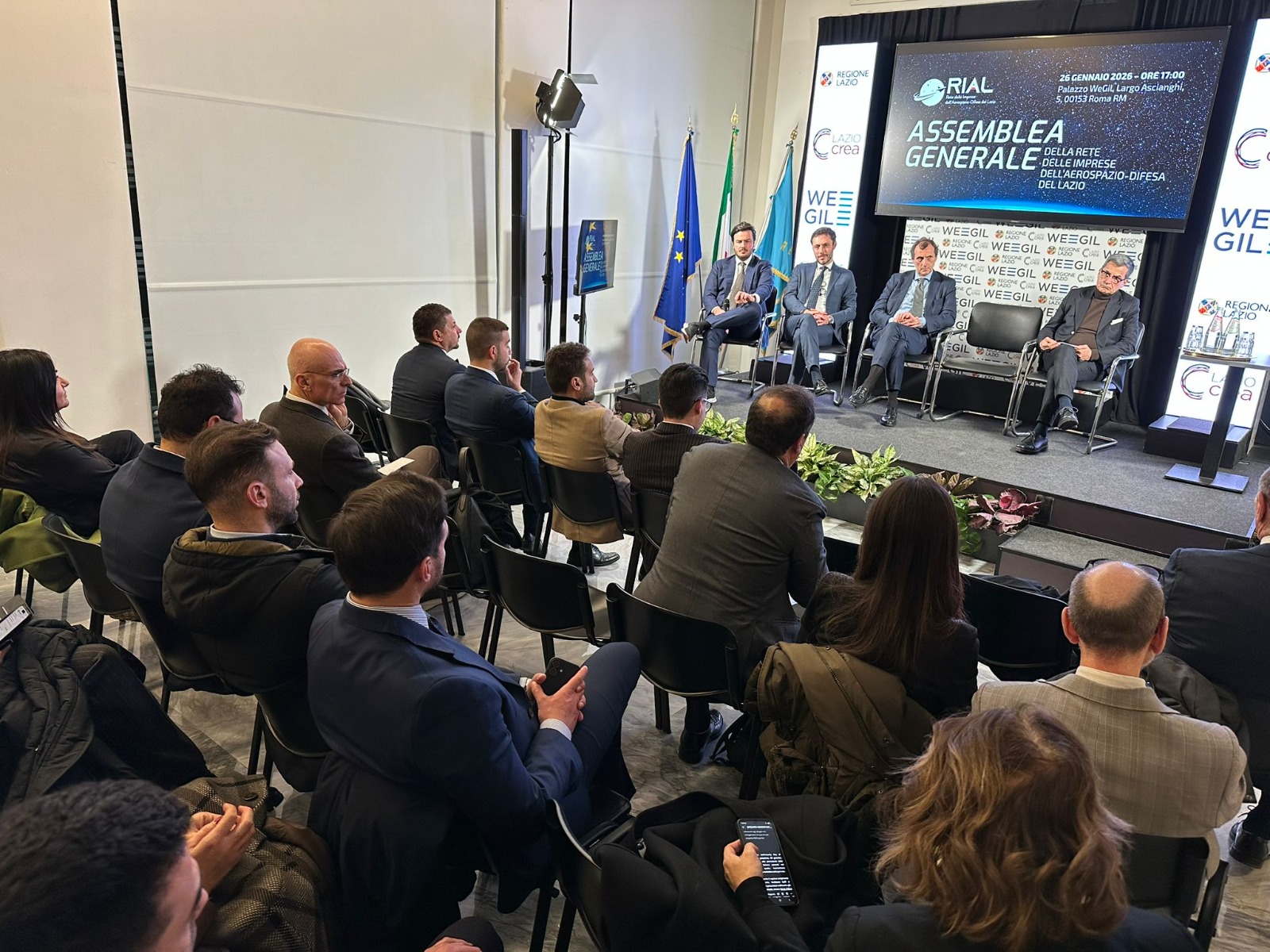 Una serata molto partecipata che ha visto la presenza di numerosi aderenti alla rete, rappresentanti di grandi aziende del settore, giornalisti e addetti ai lavori, tutti riuniti per disegnare il futuro dell’aerospazio e della difesa nel territorio laziale. Sul palco del WeGIL si sono alternati alcuni dei protagonisti principali di questa sfida strategica: l’assessore regionale allo Sviluppo economico e vicepresidente della Regione Lazio Roberta Angelilli, Jacopo Recchia, presidente della RIAL, Francesco Marcolini, presidente di Lazio Innova. Presenti anche rappresentanti di Avio S.p.A. e Thales Alenia Space.