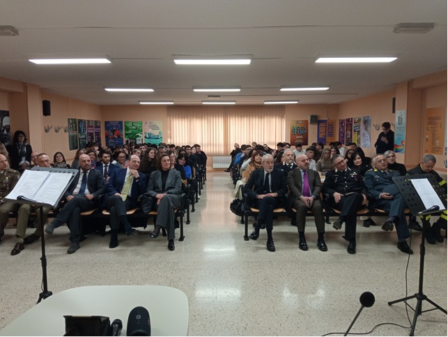 L’evento ha registrato una presenza istituzionale significativa: in sala il Prefetto dott. Giuseppe Ranieri, la Dirigente dell’Ufficio Scolastico Provinciale prof.ssa Laura Superchi, i dirigenti scolastici dei due istituti coinvolti, il Sindaco di Frosinone, il rappresentante della Provincia, il Questore, il Comandante Provinciale dei Carabinieri, il Comandante della Guardia di Finanza – Gruppo di Frosinone, il Vice Comandante Provinciale dei Vigili del Fuoco, il Comandante del 3° Reggimento “Bondone” di Cassino, il Comandante del 41° Reggimento “Cordenons” di Sora e il Comandante dello Stabilimento Propellenti di Fontana Liri.