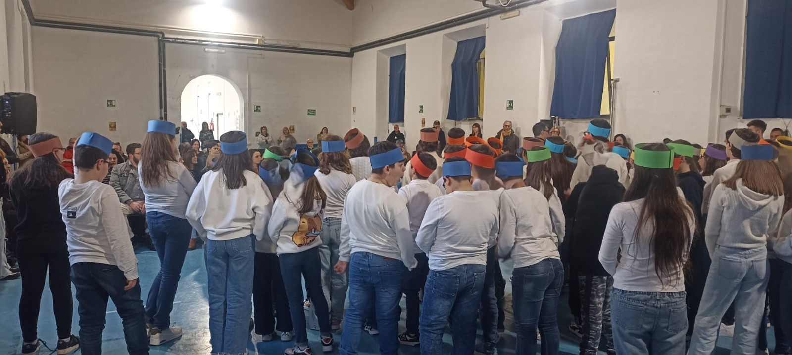 Protagonisti dell’iniziativa sono stati gli alunni delle classi quinte della scuola primaria e delle classi prime della scuola secondaria di primo grado, che hanno portato in scena uno spettacolo ispirato all’albo illustrato “Il Muro”. Un testo che i ragazzi avevano letto e approfondito nei giorni precedenti, cogliendone il significato simbolico e profondo: il muro come metafora delle divisioni, dei confini, delle paure e dei pregiudizi che possono separare gli esseri umani, ma anche come invito a riconoscerli prima che vengano costruiti.