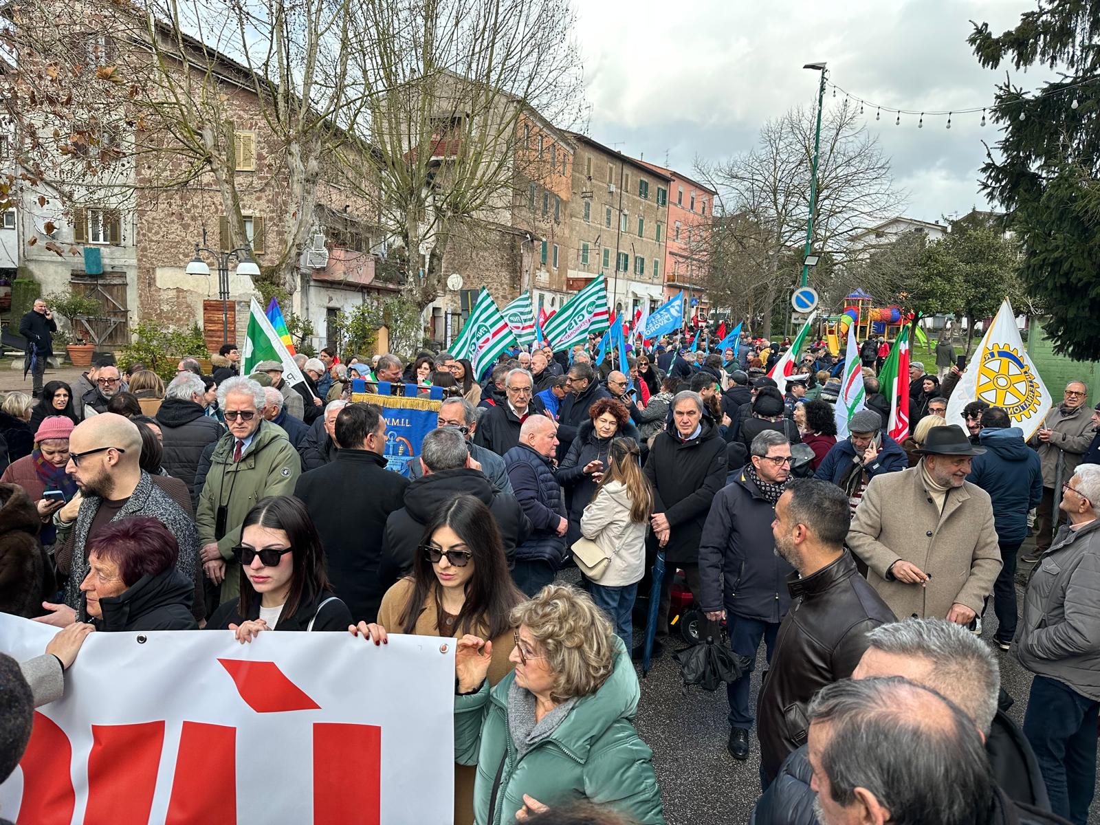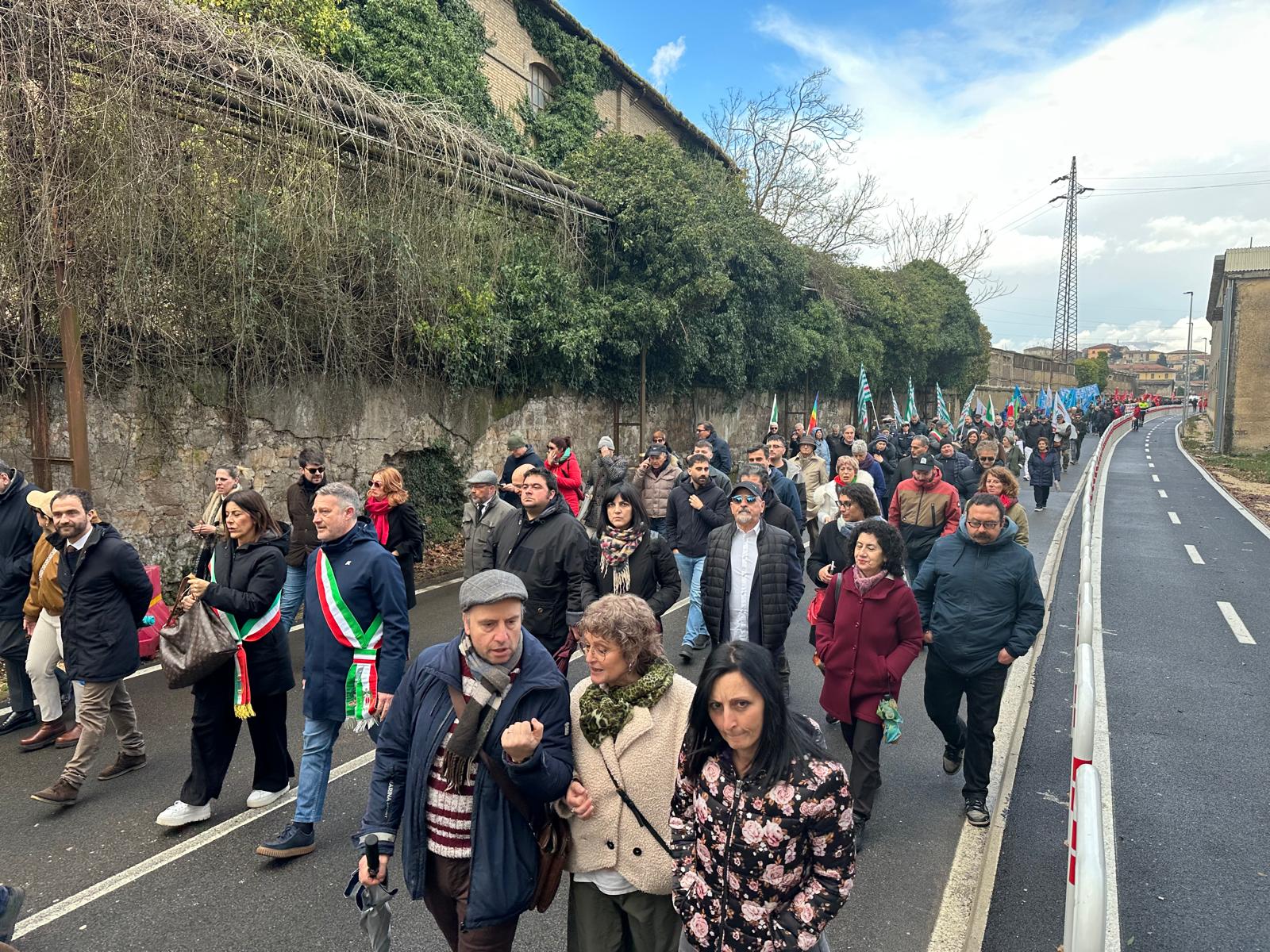 Il corteo è partito da piazza San Gioacchino, nei pressi dell’Auditorium Fabbrica della Musica, attraversando le strade della città fino a raggiungere piazza Italia. Un fiume umano fatto di amministratori locali, rappresentanti istituzionali dei Comuni viciniori, consiglieri regionali, parlamentari, organizzazioni sindacali, associazioni e semplici cittadini. Moltissimi i giovani, presenza che ha dato ulteriore forza al messaggio della giornata.