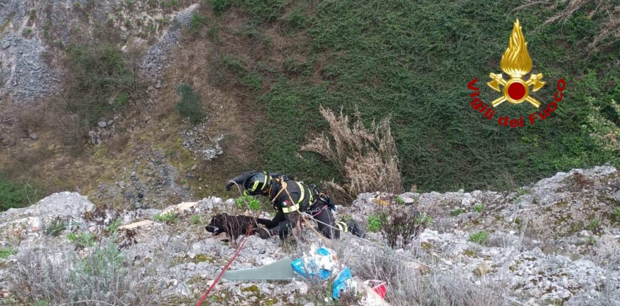 L’animale era precipitato all’interno di un burrone situato in una cava, caratterizzato da pareti particolarmente ripide e con una profondità superiore ai 100 metri.