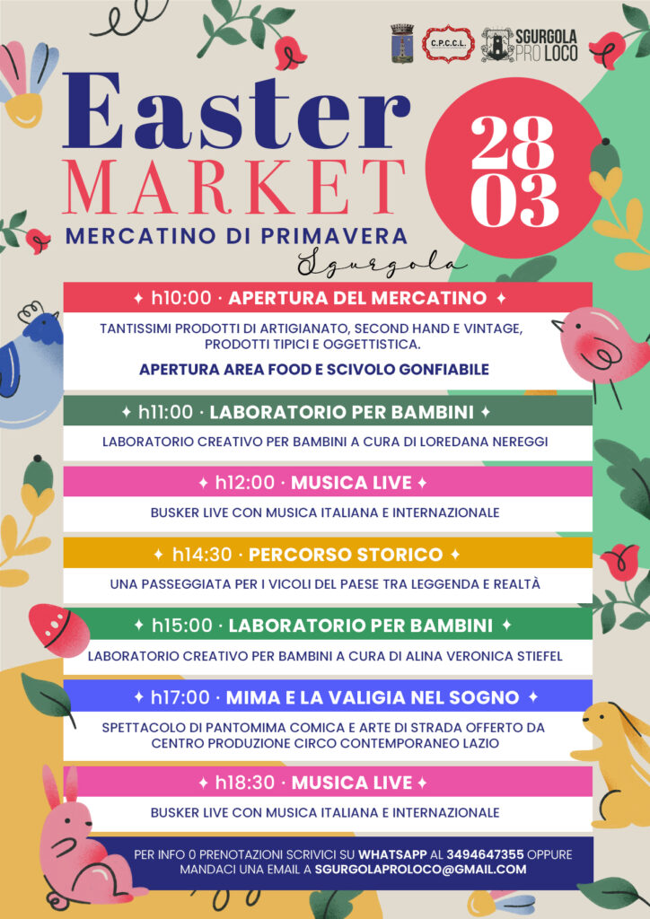 L’Easter Market rappresenta un’occasione imperdibile per scoprire il fascino del borgo di Sgurgola, vivere la primavera tra cultura, musica e artigianato e trascorrere una giornata di intrattenimento per tutta la famiglia.