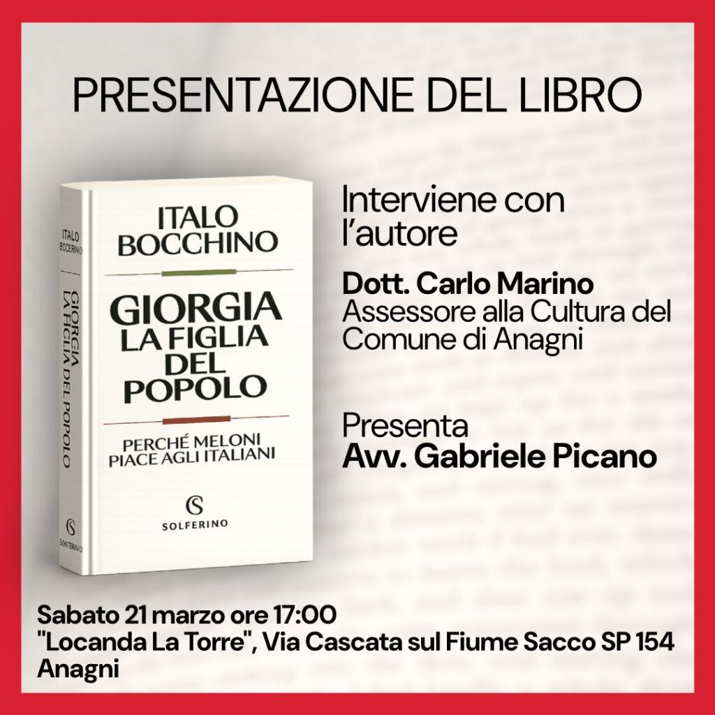 Il primo appuntamento è fissato per sabato 21 marzo alle ore 17 e sarà dedicato al libro di Italo Bocchino, “Giorgia, la figlia del popolo”. L’autore dialogherà con l’Avv. Gabriele Picano, offrendo al pubblico un momento di approfondimento, riflessione e confronto sui temi del volume.