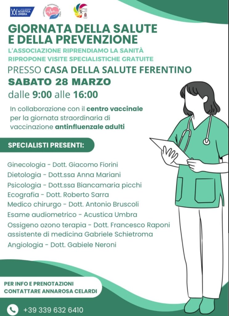 L’evento è promosso dall’associazione “Riprendiamoci la sanità”, in collaborazione con la Asl di Frosinone, la Consulta Pari Opportunità Ferentino e Acustica Umbra, a testimonianza di una sinergia territoriale sempre più orientata alla prevenzione e alla tutela della salute pubblica.