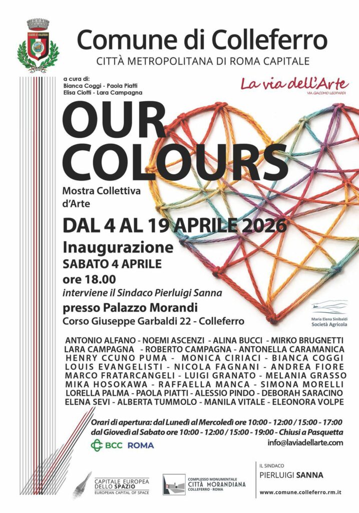 C’è un’idea precisa dietro “Our Colours”, la nuova mostra collettiva che animerà Palazzo Morandi a Colleferro dal 4 al 19 aprile 2026: quella che l’arte, nella sua molteplicità di forme e linguaggi, non sia mai un atto solitario, ma un gesto di apertura verso l’altro. Un’idea semplice e potente al tempo stesso, che l’associazione culturale La Via dell’Arte ha scelto di mettere al centro di un’esposizione corale, capace di raccogliere intorno a un unico filo conduttore ben 27 artisti provenienti da esperienze e sensibilità diverse.