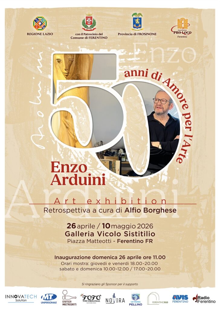 Il M° Enzo Arduini ci invita a questo dialogo tra noi e la sua arte nella sua Città natale, Ferentino, il 26 aprile 2026 alle ore 11.00 nella Galleria d’Arte Vicolo Sistitilio