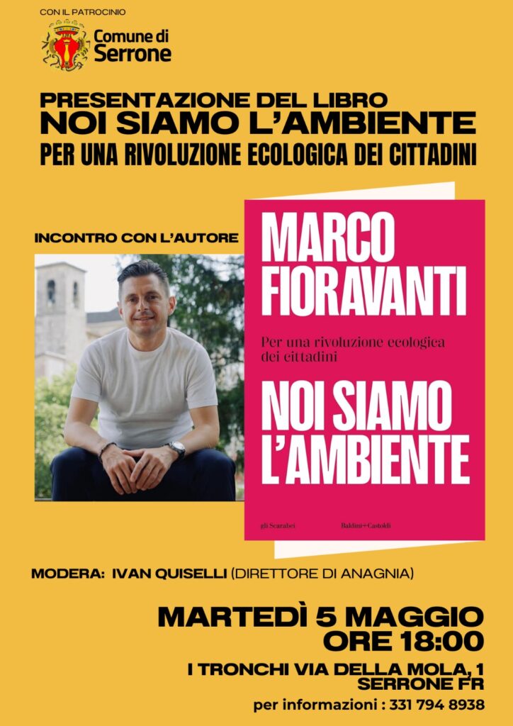SERRONE – Un appuntamento che unisce cultura, istituzioni e visione del futuro. Martedì 5 maggio, alle ore 18:00, la suggestiva cornice de “I Tronchi”, in via della Mola 1 a La Forma, ospiterà Marco Fioravanti, sindaco di Ascoli Piceno, presidente di Anci Marche e presidente del Consiglio Nazionale Anci, per la presentazione del suo libro “Noi siamo l’ambiente. Per una rivoluzione ecologica dei cittadini”. Qui il link all’evento su Facebook.