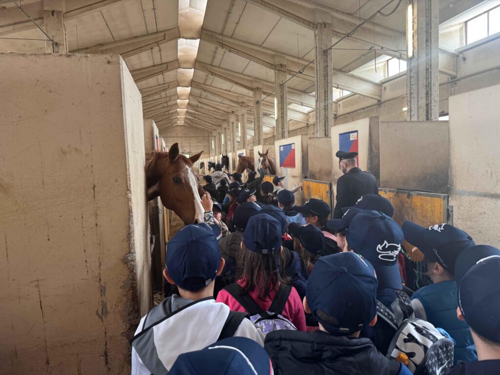 Il percorso si è concluso con la visita agli squadroni operativi, dove i bambini hanno potuto avvicinarsi direttamente ai cavalli, accarezzarli e osservare da vicino il rapporto di fiducia che si crea tra animale e militare.