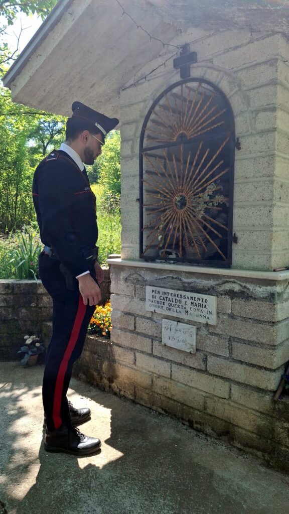 Sempre questa mattina, 18 aprile 2026, a Pofi, i Carabinieri della locale Stazione sono intervenuti in via Varane, in località Molella, a seguito del danneggiamento di una statua della Madonna del Carmine.