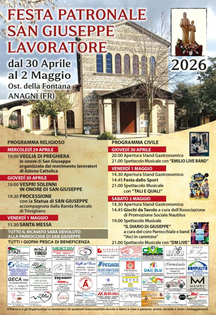 Il profumo della primavera a Anagni porta con sé il suono delle campane e l’eco delle celebrazioni popolari che definiscono l’identità di un territorio. La comunità di Osteria della Fontana si appresta a vivere uno dei momenti più sentiti dell’anno: la Festa Patronale di San Giuseppe Lavoratore.