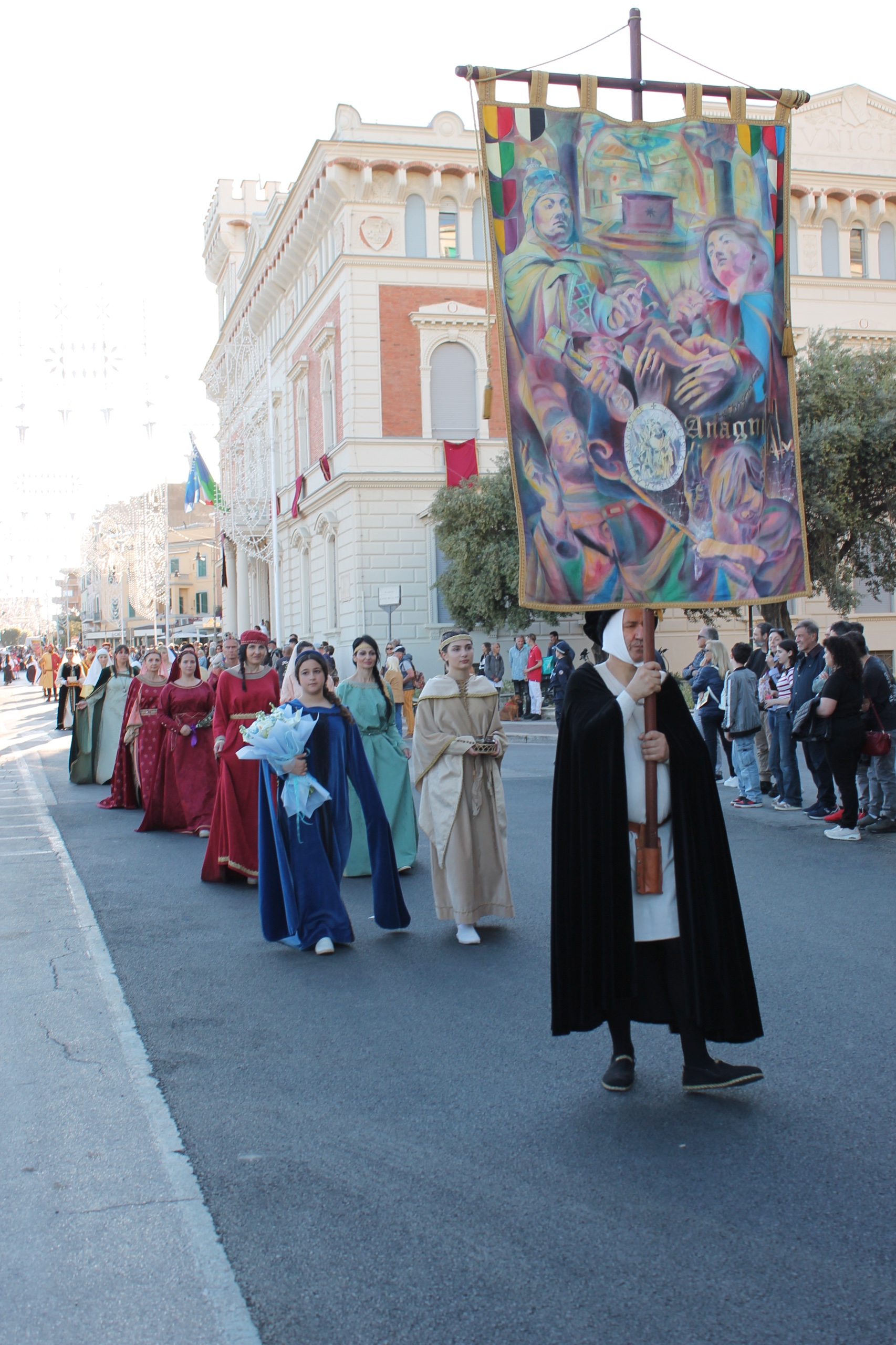 Lo scorso 26 aprile, in occasione della tradizionale festa della Madonna delle Grazie, la città di Nettuno ha aperto le proprie strade a circa venti realtà storiche provenienti da tutto il Lazio. L’invito era arrivato dall’Associazione Stella del Mare, che ogni anno organizza uno degli appuntamenti più sentiti del calendario devozionale e culturale del litorale laziale. Tra le realtà partecipanti, Anagni si è distinta per qualità della rappresentanza e capacità di coinvolgere il pubblico presente lungo il percorso.