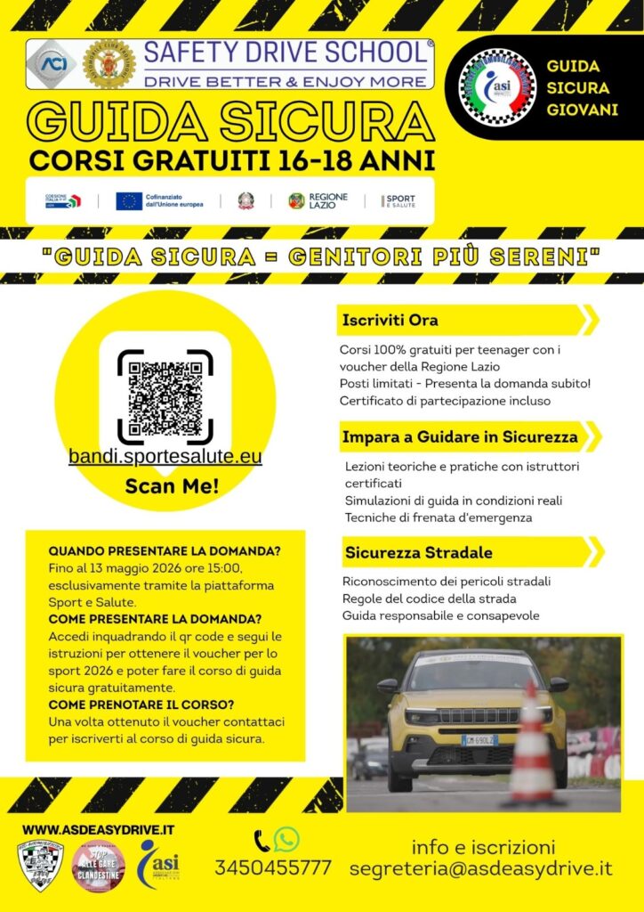 Nel Lazio investire sulla sicurezza stradale significa partire dai più giovani. È con questo obiettivo che la Regione Lazio ha lanciato una nuova iniziativa rivolta ai ragazzi tra i 16 e i 18 anni, offrendo la possibilità di partecipare gratuitamente a corsi di guida sicura grazie ai voucher sport.