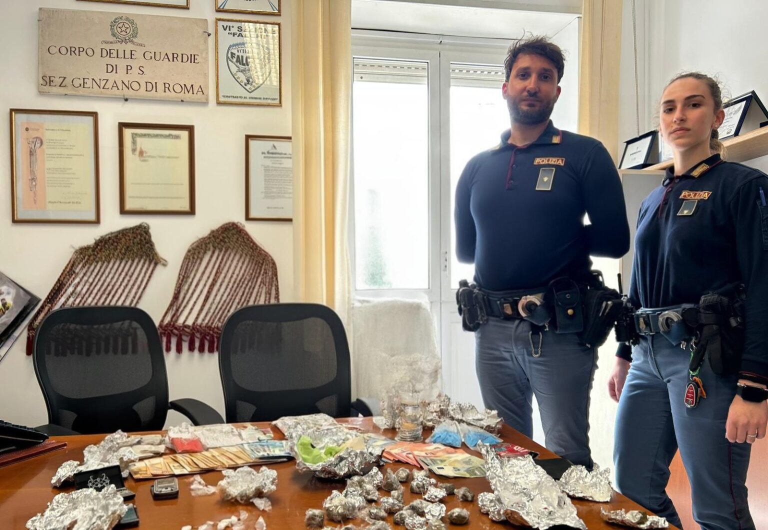 Sul fronte degli home lab, è Genzano a fare da scenario al blitz più significativo. Due fratelli gestivano un vero e proprio laboratorio domestico: oltre 200 grammi di sostanza stupefacente — tra hashish e cocaina — pronti per essere frazionati, insieme a strumenti da taglio, materiale di confezionamento e più di 2.500 euro in contanti. A completare il quadro, appunti cartacei che tenevano traccia di una contabilità informale ma strutturata. Entrambi sono finiti in manette.