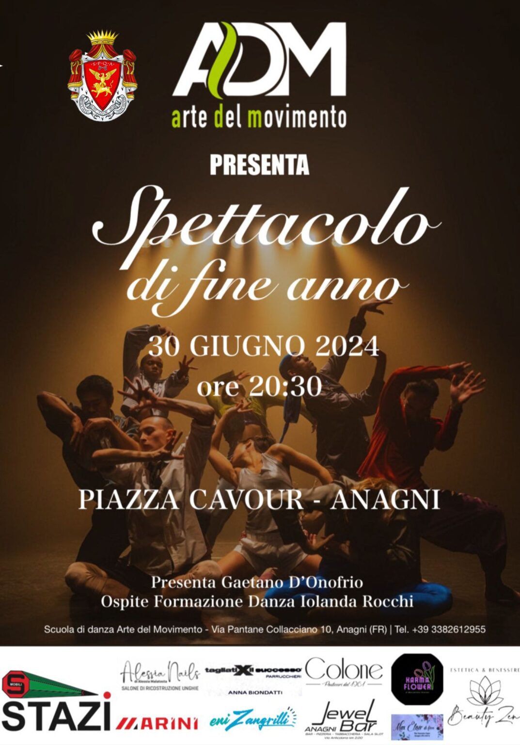 “Arte del Movimento”, scuola di ballo ad Anagni, organizza per il prossimo 30 giugno alle ore 20.30 in piazza Cavour ad Anagni un bellissimo spettacolo di fine anno al quale tutti sono invitati a partecipare. L’evento sarà presentato da Gaetano D’Onofrio e avrà come ospite Iolanda Rocchi. Non mancate!